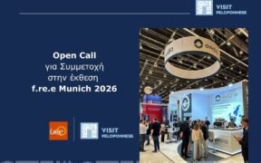 Μόναχο, 18–22 Φεβρουαρίου 2026 Η Περιφέρεια Πελοποννήσου, μέσω του Visit Peloponnese, προσκαλεί επαγγελματίες και φορείς του τουρισμού να εκδηλώσουν ενδιαφέρον για συμμετοχή στο περίπτερό της, στο πλαίσιο της διεθνούς έκθεσης f.re.e Munich 2026, η οποία θα πραγματοποιηθεί στο Μόναχο από 18 έως 22 Φεβρουαρίου 2026. Σχετικά με την έκθεση f.re.e Munich Η f.re.e αποτελεί τη […]