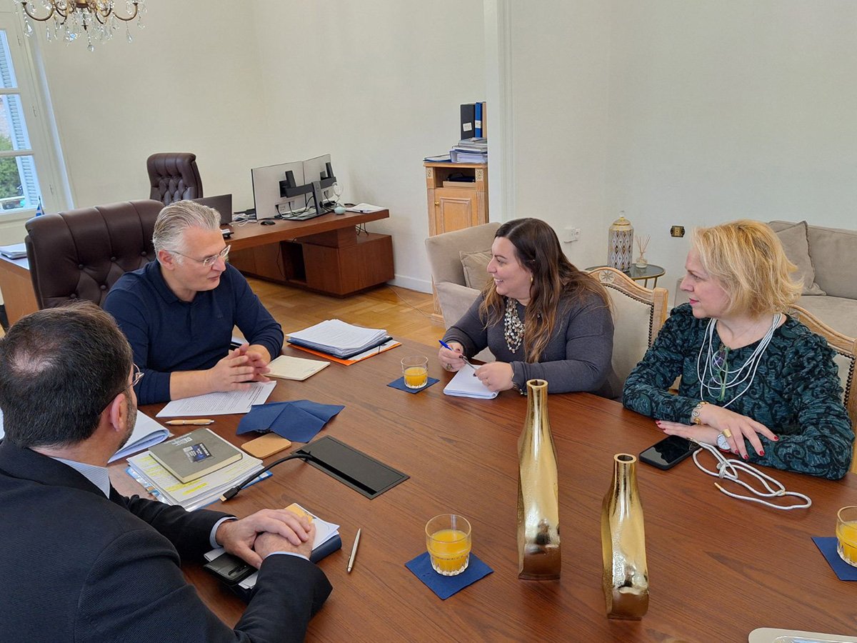 Στη συνάντηση συμμετείχαν η κα Ευαγγελία Γεωργίτση – Διευθύντρια Επικοινωνίας της Αντιπροσωπείας στην Ελλάδα της Ευρωπαϊκής Επιτροπής, η κα Βίκυ Ιγγλέζου και η κα Γεωργία Μπαμπανικολού εκπρόσωποι του γραφείου Europe Direct Πελοποννήσου και ο κ. Μάρκος Λέγγας – Εντεταλμένος Σύμβουλος του Γραφείου Ευρωπαϊκών Προγραμμάτων και Περιφερειακός Σύμβουλος.
