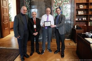 Στο πλαίσιο της συνάντησης ο Πρόεδρος της Ε.Σ.Ε.Τ. κ. Γιώργος Κουλουράς, απένειμε τιμητική πλακέτα στον Πρόεδρο της Βουλής των Ελλήνων κ. Νικήτα Κακλαμάνη για την πολυσήμαντη και πολύχρονη προσφορά του στην Ελληνική Περιφέρεια από όλες στις θέσεις που υπηρέτησε όλα αυτά τα χρόνια στην πολιτική του διαδρομή.