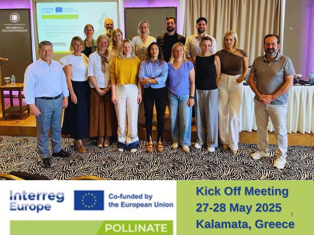 Η Καλαμάτα φιλοξένησε στις 27 και 28 Μαΐου 2025 την εναρκτήρια συνάντηση (Kick-Off Meeting) του ευρωπαϊκού έργου POLLINATE – Improving Territorial Policies to Address the Decline of Pollinators, το οποίο χρηματοδοτείται από το πρόγραμμα Interreg Europe.