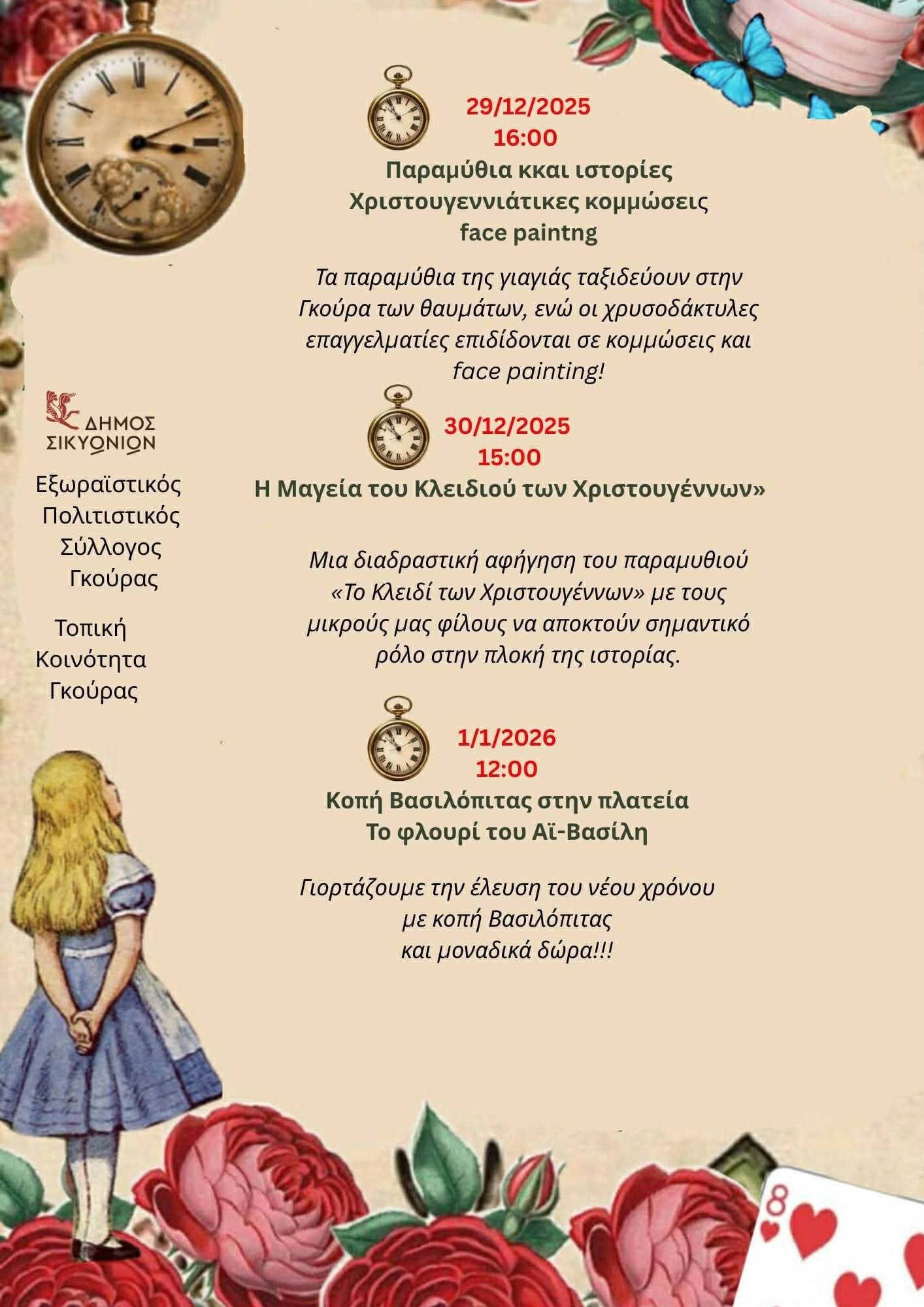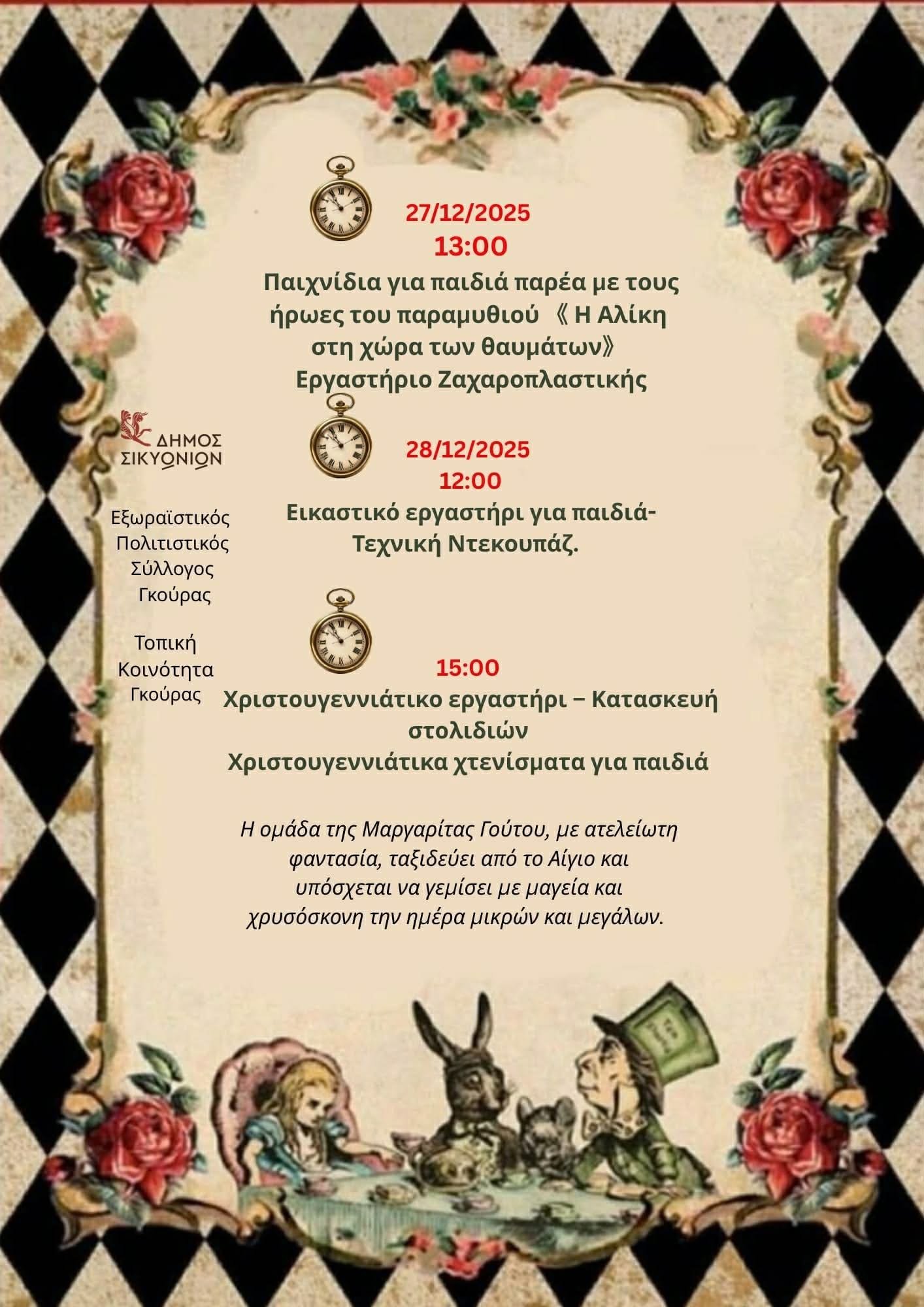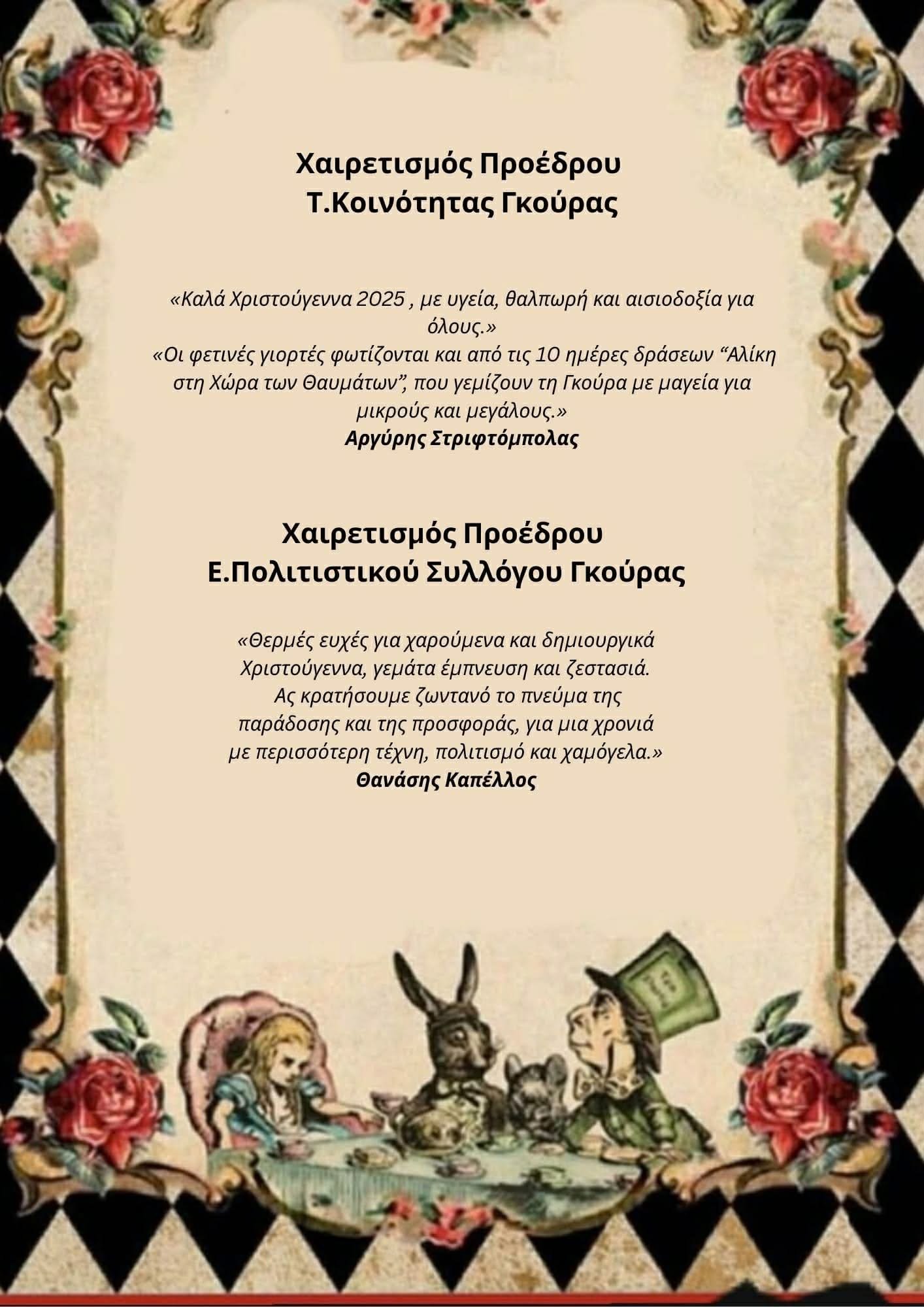ΕπικαιρότηταΤα μαγικά Χριστούγεννα της Αλίκης ζωντανεύουν στη Γκούρα Κορινθίας theodosis 7 Δεκεμβρίου 2025Share