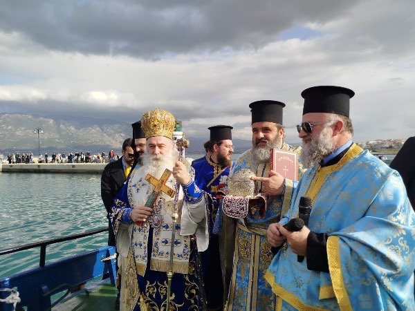 Στον Ι. Καθεδρικό Ναό του Αποστόλου Παύλου Κορίνθου έλαβε χώρα η πανηγυρική Θ. Λειτουργία, στην οποία προέστη ο Σεβασμιώτατος Μητροπολίτης Κορίνθου κ. Παύλος. Ιδιαίτερη ευλογία αποτελεί η μεταφορά στο ναό της Τιμίας Κάρας του Αγίου Σωφρονίου, Αρχιεπισκόπου Ιεροσολύμων, συγγραφέα των ευχών του Μεγάλου Αγιασμού, η οποία φυλάσσεται στην Ι. Μονή Παναγίας Φανερωμένης Χιλιομοδίου. Στην Ακολουθία παρέστησανεκπρόσωποι των Πολιτικών και Στρατιωτικών Αρχών, με επικεφαλής τον Υπουργό Υποδομών και Μεταφορών κ. Χρίστο Δήμα, εκπρόσωποι των Φορέων και πλήθος κόσμου. Στη συνέχειατελέστηκε ο Μέγας Αγιασμός, με τη συμμετοχή όλων των Ιερέων της πόλεως Κορίνθου και ευθύς αμέσως ξεκίνησε υπό τον παιανισμό της Φιλαρμονικής του Δήμου Κορινθίων και συνοδεία αγήματος εκ της Σχολής Μηχανικού λιτανευτική πομπή προς τον «Φλοίσβο», το Κεντρικό Λιμάνι της Κορίνθου. Στο λιμάνι περίμενε σκάφος (ευγενική προσφορά) από τη «Διώρυγα Κορίνθου», στο οποίο επιβιβάσθηκαν ο Μητροπολίτης και ο Ιερός Κλήρος, προκειμένου να πραγματοποιηθεί η Κατάδυση του Τιμίου Σταυρού. Με τη συμμετοχή63 κολυμβητών, τον Τίμιο Σταυρό ανέσυρε ο κ. Αριστείδης Δημάκης, φοιτητής, λαμβάνοντας ως ευλογία από τον Μητροπολίτηένα χρυσό σταυρό, ενώ οι υπόλοιποι κολυμβητές έλαβαν αντιστοίχως από έναν ασημένιο σταυρό. Η τελετή ολοκληρώθηκε με τις ευλογίεςκαι τις θερμές ευχαριστίες του Μητροπολίτου προς τις Αρχές, τον Κλήρο και τον Λαό, που συμμετείχαν πάνδημα στον εορτασμό των Θεοφανείων.