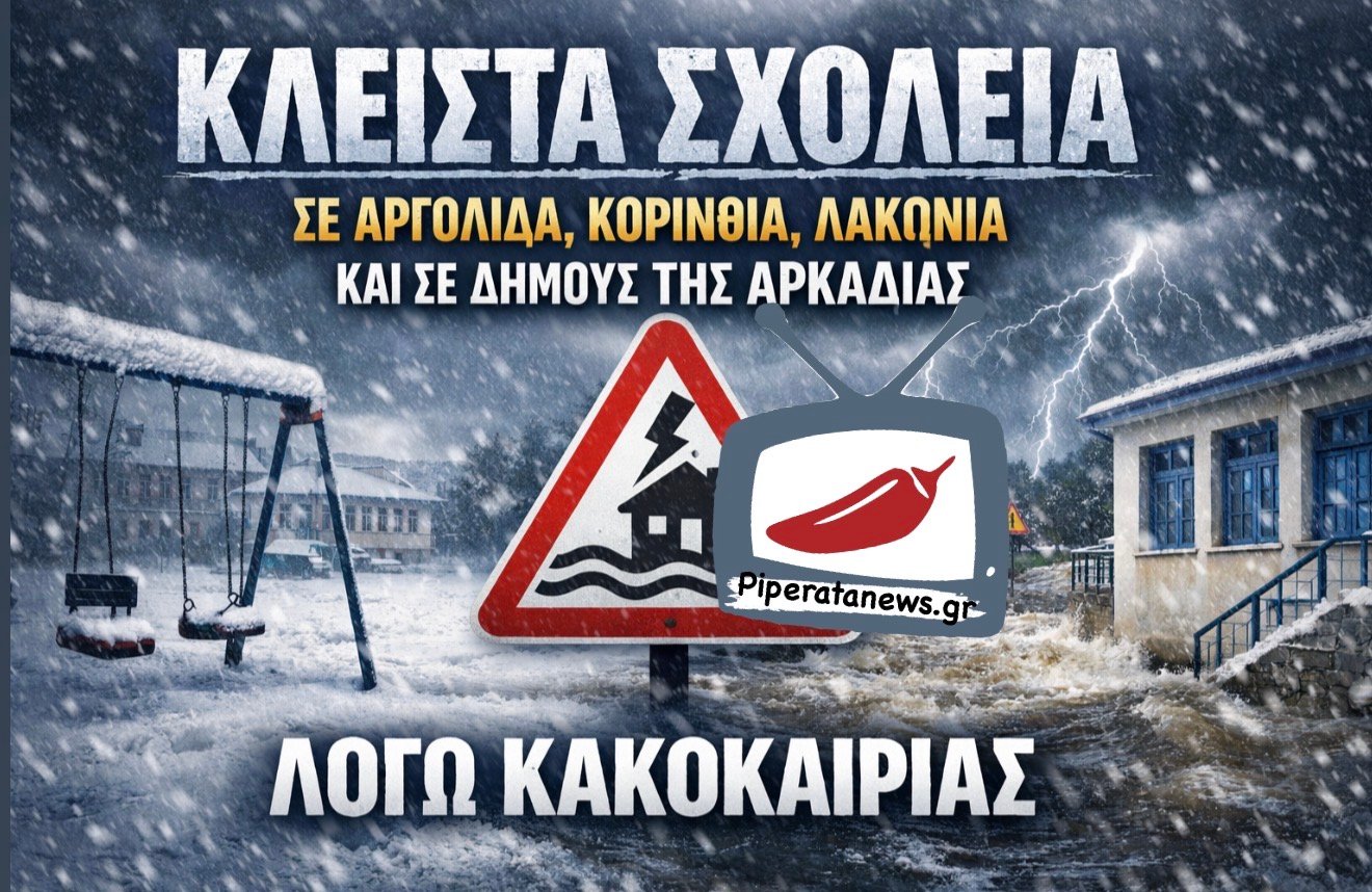 Κλειστά σχολεία σε Αργολίδα, Κορινθία, Λακωνία και σε Δήμους της Αρκαδίας λόγω κακοκαιρίας