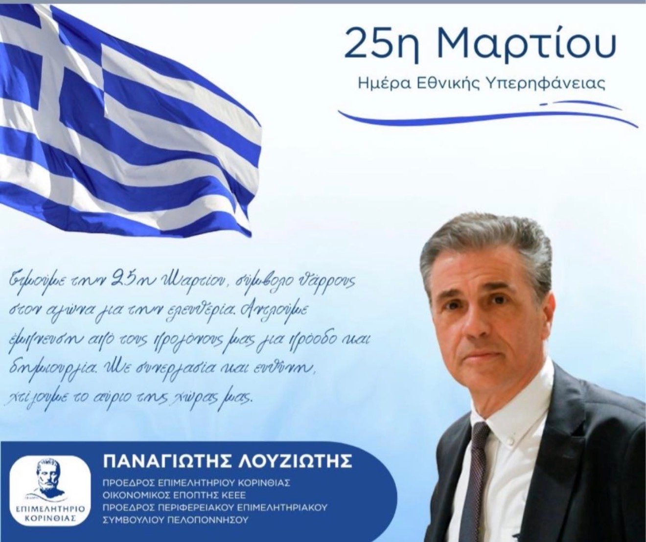Θυμόμαστε την 25η Μαρτίου, σύμβολο θάρρους στον αγώνα για την ελευθερία. Ας αντλήσουμε έμπνευση από τους προγόνους μας για πρόοδο και δημιουργία. Με συνεργασία και ενότητα, χτίζουμε το αύριο της χώρας μας.