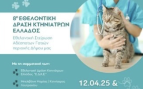 Σάββατο 12 & Κυριακή 13 Απριλίου 2025 Ο Δήμος μας φιλοξενεί για 8η χρονιά τη σημαντική εθελοντική δράση στείρωσης αδέσποτων γατιών, συμβάλλοντας ενεργά στην προστασία των ζώων και τη βελτίωση των συνθηκών διαβίωσης. Με τη συμμετοχή: Εθελοντική Δράση Κτηνιάτρων Ελλάδος – ”Ε.Δ.Κ.Ε.” Μπελιβάνη Μαρία & Λέκκας Ιωάννης – Κτηνίατροι Λουτρακίου Σε συνεργασία με το Φιλοζωικό Σωματείο […]