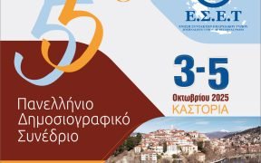 Η Ένωση Συντακτών Επαρχιακού Τύπου θα πραγματοποιήσει το 55ο Πανελλήνιο Δημοσιογραφικό Συνέδριό της με τίτλο «Περιφερειακά Μέσα Ενημέρωσης –Αξιοπιστία και Ελευθεροτυπία», 3 – 5 Οκτωβρίου 2025, στηναίθουσα συνεδριάσεων του Ενυδρείου Καστοριάς. Συμμετέχουν είκοσι εισηγητές – συντονιστές από τον επιστημονικό, πανεπιστημιακό και δημοσιογραφικό χώρο και περισσότεροι από εκατό δημοσιογράφοι – σύνεδροι από όλες σχεδόν τις περιφέρειες της χώρας. […]