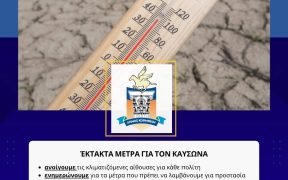 • Ο Δήμος Κορινθίων ανοίγει τις κλιματιζόμενες αίθουσες για κάθε πολίτη • ενημερώνει για τις βασικές οδηγίες προστασίας από τον καύσωνα • προστατεύει τους εργαζόμενους του 1. Λαμβάνοντας υπ’ όψιν τις προειδοποιήσειςγια υψηλές τιμές στη θερμοκρασία, την Δευτέρα 21 Ιουλίου και την Τρίτη 22 Ιουλίου, όπως αυτές έχουν αναρτηθεί στο επίσημο portal της Εθνικής Μετεωρολογικής […]