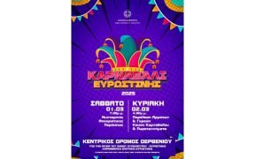Kαρναβάλι Ευρωστίνης 2025 Κορυφώνονται οι αποκριάτικες εκδηλώσεις στην Ευρωστίνη Κορινθίας το Σαββατοκύριακο 01 και 02 Μαρτίου, με την βραδινή ποδαράτη, το Σάββατο στις 7:00 το απόγευμα και βέβαια τη μεγάλη καρναβαλική παρέλαση την Κυριακή στις 4:00 το απόγευμα, στον κεντρικο δρόμο του Δερβενίου. Στη συνέχεια τα γκρουπ θα συγκεντρωθούν στην πλατεία του Δερβενίου που θα […]