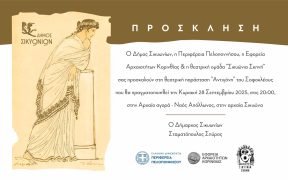 Σας προσκαλούμε στην θεατρική παράσταση “Αντιγόνη” του Σοφοκλέους που θα πραγματοποιηθεί στον αρχαιολογικό χώρο της Αρχαίας Σικυώνας, σύμφωνα με τη συνημμένη πρόσκληση.
