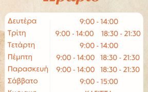 Αγαπητά μέλη, Σας ενημερώνουμε ότι από 1/07/2025 τίθεται σε ισχύ το προαιρετικό καλοκαιρινό ωράριο λειτουργίας των καταστημάτων. Για οποιαδήποτε διευκρίνιση μπορείτε να απευθύνεστε στον Εμπορικό Σύλλογο. Καλή Καλοκαιρινή σεζόν Η Πρόεδρος […]
