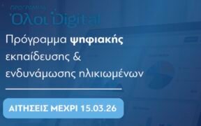Ο Δήμος Λουτρακίου – Περαχώρας – Αγίων Θεοδώρων εντάχθηκε στο χρηματοδοτούμενο πρόγραμμα του Υπουργείου Κοινωνικής Συνοχής και Οικογένειας με τίτλο «Ψηφιακή Εκπαίδευση και Ενδυνάμωση των Ηλικιωμένων και των Ατόμων με Αναπηρία». Το πρόγραμμα υλοποιείται με την υποστήριξη του Υπουργείου Ψηφιακής Διακυβέρνησης, φορείς υλοποίησης το Εθνικό Δίκτυο Υποδομών Τεχνολογίας και Έρευνας Α.Ε. (Ε.Δ.Υ.Τ.Ε.) και το Ινστιτούτο […]