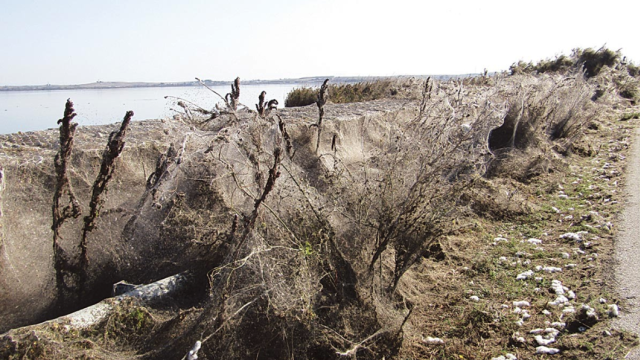 Ένα μοναδικό πέπλο ιστού αράχνης έχει εκταθεί τουλάχιστον 1000 μέτρα και έχει σκεπάσει όλη την βλάστηση δίπλα από την ακτή.