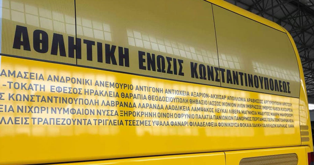 Εκτός των εσωτερικών αλλαγών, η ΑΕΚ προχώρησε σε μια εξαιρετική κίνηση. Έχει αναγράψει στο πλάι του λεωφορείου τις ελληνικές πόλεις στη Μικρασία και τον Πόντο, δηλαδή σχεδόν όλες!
