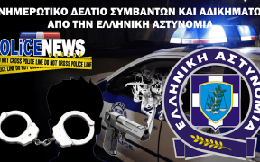 ΕΝΗΜΕΡΩΤΙΚΟ ΔΕΛΤΙΟ ΑΔΙΚΗΜΑΤΩΝ ΚΑΙ ΣΥΜΒΑΝΤΩΝ από 17.00 ώρα της 22.10.2018 έως 09.00 ώρα της 23.10.2018 ΔΙΕΥΘΥΝΣΗ ΑΣΤΥΝΟΜΙΑΣ ΑΡΓΟΛΙΔΑΣ Συνελήφθη ένα (1) άτομο μετά από Ένταλμα Σύλληψης Συνελήφθη, χθες (22.10.2018) το πρωί, στο Ναύπλιο Αργολίδας, από αστυνομικούς της Ομάδας Δίκυκλης Αστυνόμευσης (ΔΙ.ΑΣ.) Αργολίδας, 19χρονος ημεδαπός, γιατί σε βάρος του εκκρεμούσε Ένταλμα Σύλληψης του κ. Ανακριτή Ναυπλίου, […]