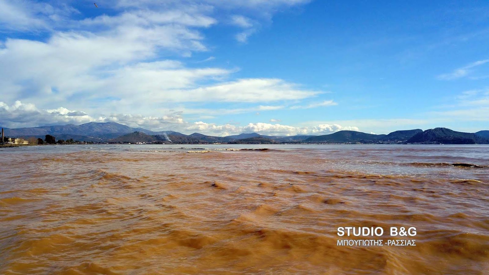 Άλλαξε χρώμα η θάλασσα του Αργολικού κόλπου από τις τεράστιες ποσότητες λασπόνερων που εκβάλλονται από το ποτάμι της Πάνιτσας στη Νέα Κίο.