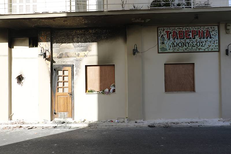 Εξω από την ταβέρνα πάντως στη μνήμη των θυμάτων συγγενείς και φίλοι έχουν αφήσει λίγα λουλούδια και έχουν ανάψει κεράκια, ενώ υπάρχουν και κάποια σημειώματα.