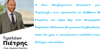 Ο Δήμος Κορινθίων θα δημοπρατήσει άμεσα το Νέο Γυμναστήριο για την κατασκευή του οποίου η δαπάνη θα προέλθει από πόρους του Δήμου, επιδιώκοντας ταυτόχρονα την χρηματοδότηση του από Εθνικούς ή Ευρωπαϊκούς πόρους. Το κλειστό γυμναστήριο θα γίνει σε οικοπεδική έκταση 14.500 στρεμμάτων στην περιοχή του κόμβου του αυτοκινητοδρόμου των Εξαμιλίων.