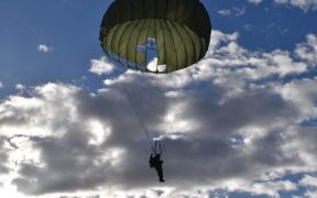 Μετά από πτώση από C130, ένας αλεξιπτωτιστής, μέλος της ειδικής μονάδας του ελληνικού στρατού, κατέληξε μπλεγμένος σε καλώδια της ΔΕΗ. Σύμφωνα με τις πληροφορίες, είναι καλά στην υγεία του. Πηγή: peloponnisosnews.gr