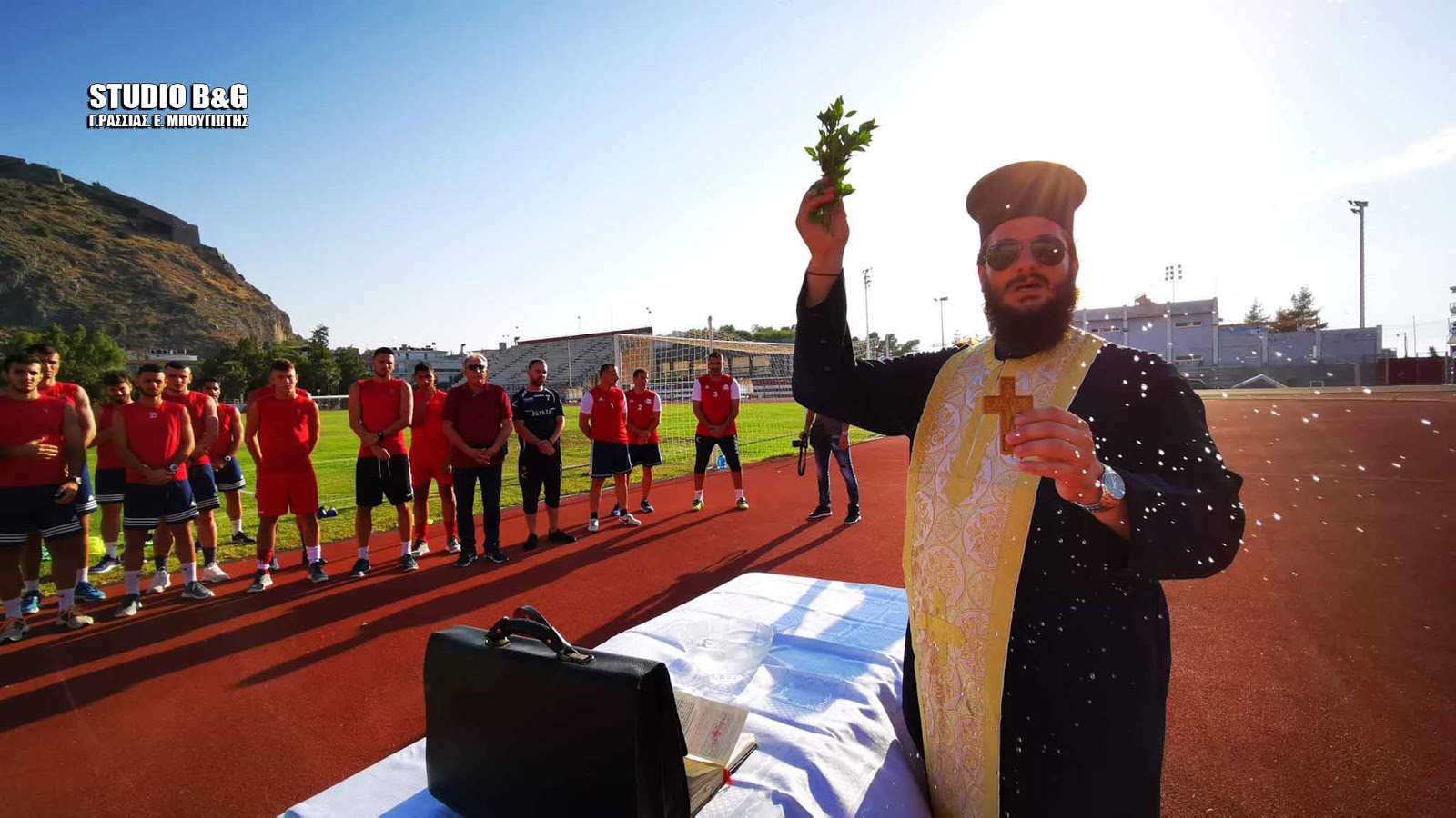 Αγιασμό έκανε εν όψει της έναρξης της αγωνιστικής περιόδου η ομάδα του “Ναυπλίου 2017” στο Δημοτικό Αθλητικό Κέντρο Ναυπλίου το απόγευμα της Δευτέρας 26 Αυγούστου 2019