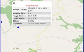 Σεισμική δόνηση μεγέθους 2,8 Ρίχτερ σημειώθηκε νωρίς το απόγευματης Τετάρτης 7 Αυγούστου στην Κορινθία. Σύμφωνα με το Γεωδυναμικό Ινστιτούτο ο σεισμός είχε εστιακό βάθος 5χλμ ενώ το επίκεντρο ήταν κοντά στο Γκράβα-Λάκκα Κλημεντίου. Πηγή :korinthostv.gr