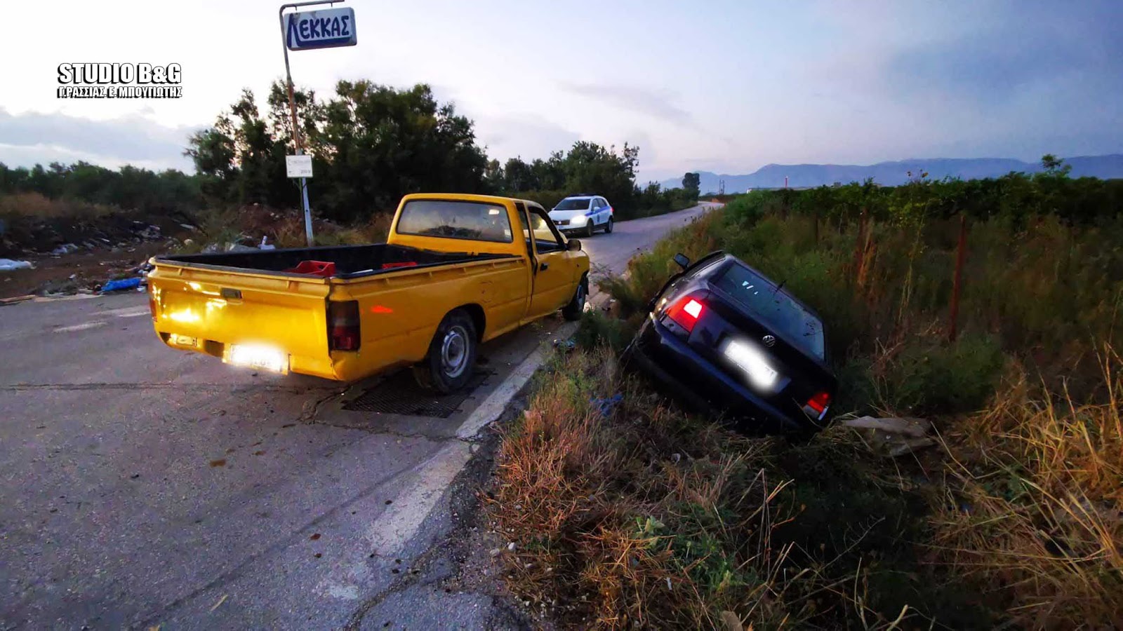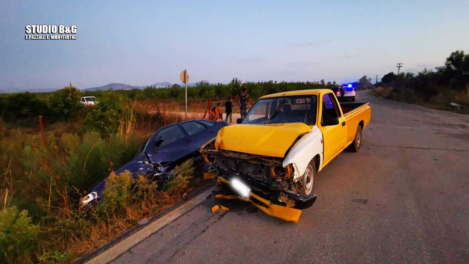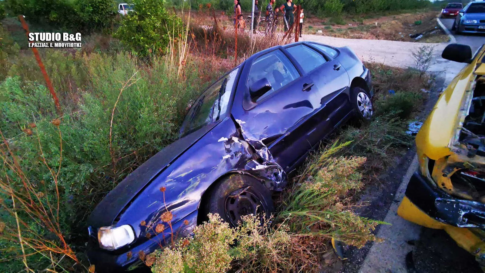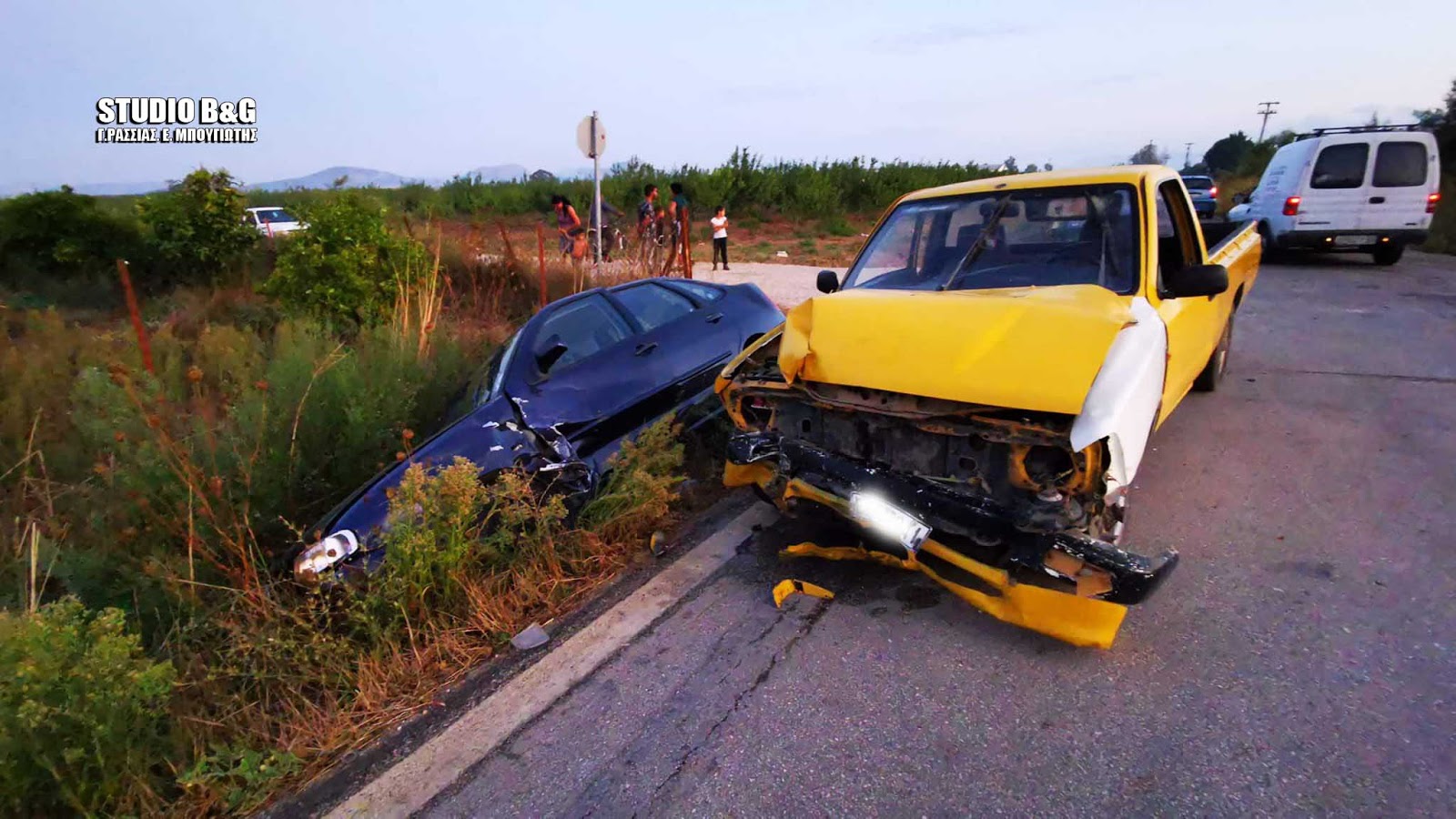Συμφωνα πάντα από τις πρώτες πληροφορίες το ένα αυτοκίνητο εξήλθε από αγροτικό δρόμο παραβιάζοντας το stop και συγκρούστηκε με διερχόμενο όχημα το οποίο και ανετράπη σε παρακείμενο χαντάκι.