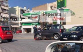 Τροχαίο ατύχημα σημειώθηκε σήμερα (29/10/2019) το μεσημέρι, στη διασταύρωση της Γ. Παπανδρέου με Πατρών, όταν Ι.Χ. αυτοκίνητο συγκρούστηκε σφοδρά με δίκυκλο. Ο οδηγός της μηχανής διακομίστηκε με ασθενοφόρο ΕΚΑΒ στο Γενικό Νοσοκομείο Κορίνθου καθώς έφερε τραύματα. Πηγή: korinthostv.gr