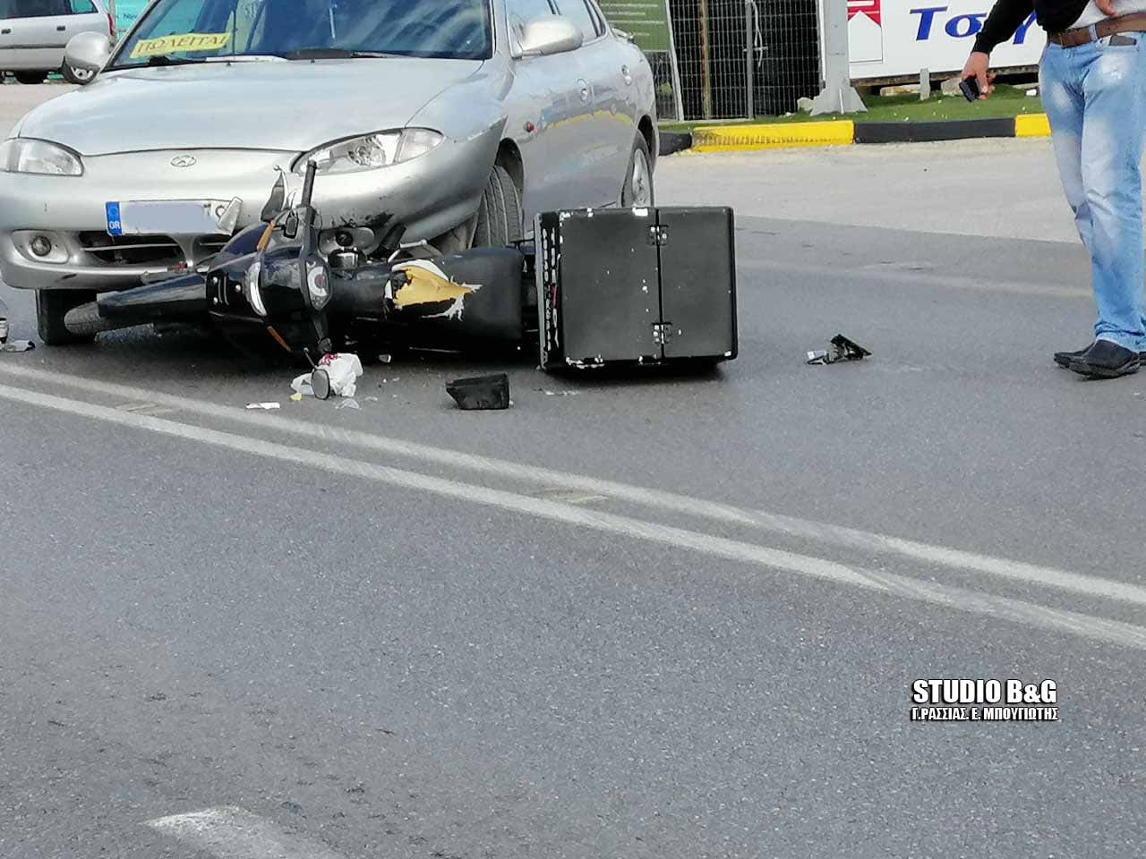 Από την σύγκρουση τραυματίστηκε ο οδηγός του δίκυκλου όπου και μεταφέρθηκε με ασθενοφόρο του ΕΚΑΒ στο νοσοκομείο του Άργους.
