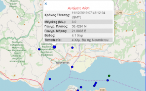 Σεισμική δόνηση έγινε αισθητή στην Πάτρα. Σύμφωνα με την αυτόματη λύση του Γεωδυναμικού Ινστιτούτου Πατρών, η δόνηση που σημειώθηκε στις 9.48, είχε ένταση 3,0 Ρίχτερ και επίκεντρο 4 χλμ. ΒΔ της Ναυπάκτου. Το εστιακό βάθος της δόνησης ήταν στα 4,1 χιλιόμετρα.