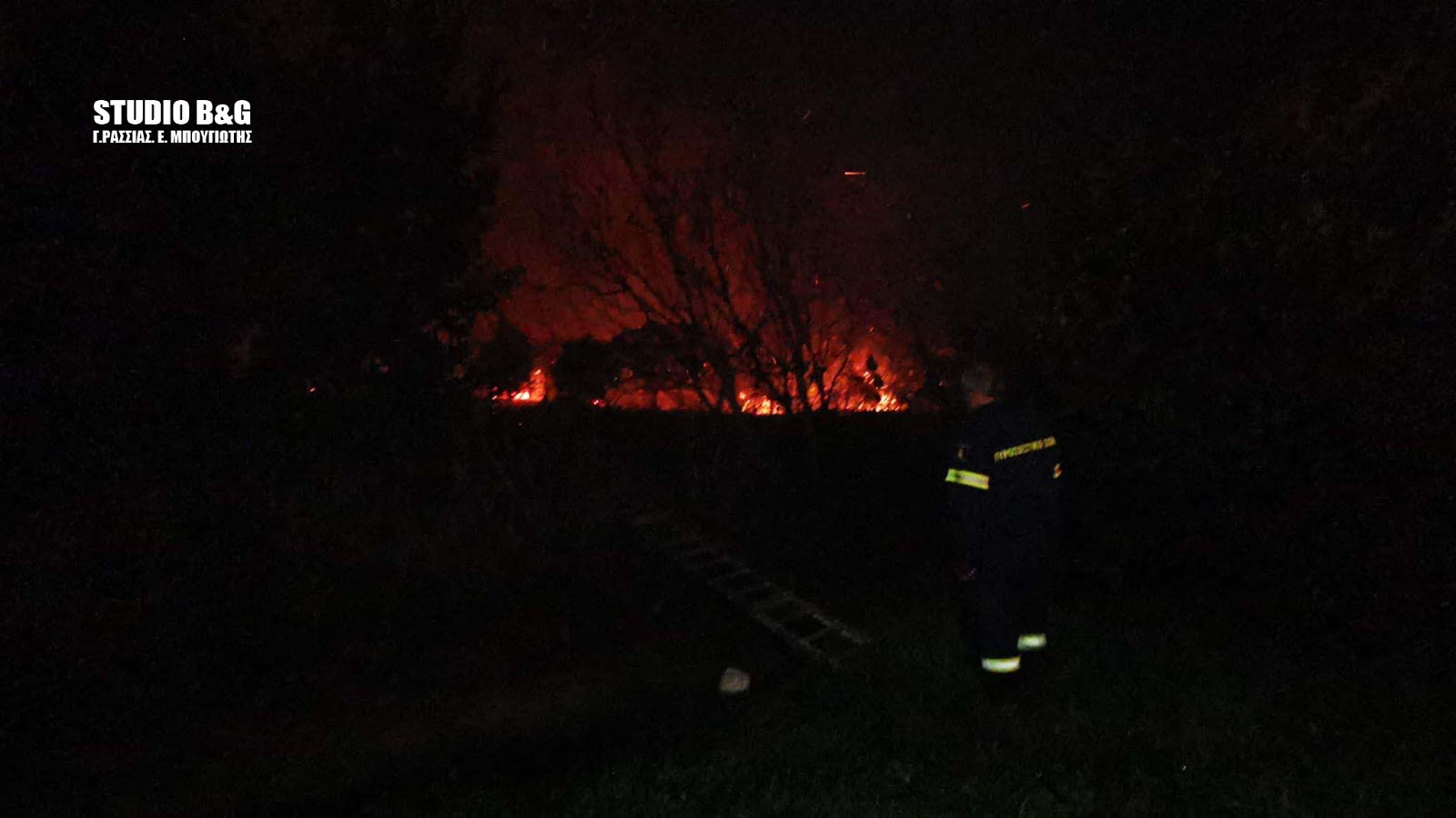 Στο σημείο επιχειρούν δυνάμεις της πυροσβεστικής από το Άργος ενώ έχουν ζητηθεί ενισχύσεις από το Ναύπλιο.