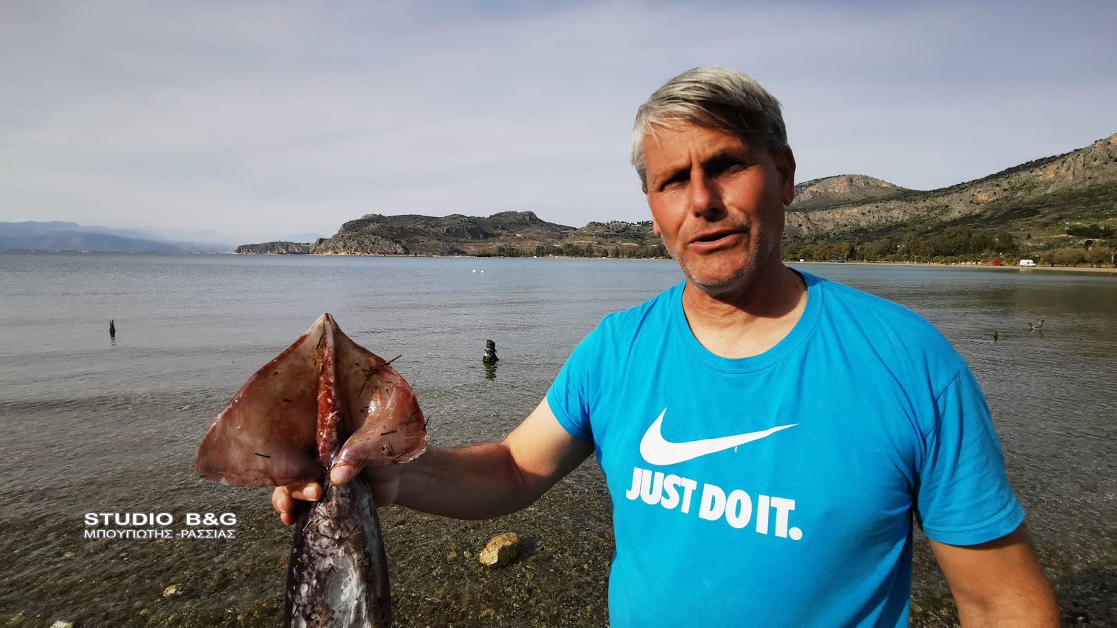 Ένας ερασιτέχνης ψαράς ο Κωνσταντίνος Πετρουλάς από το Ναύπλιο έπιασε ένα μεγάλων διαστάσεων καλαμάρι (θράψαλο) στην παραλία της Καραθώνας στο Ναύπλιο.