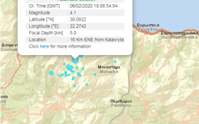 Σεισμός 4,1 Ρίχτερ σημειώθηκε στις 18:06 την Πέμπτη 6 Φεβρουαρίου, με το επίκεντρο να βρίσκεται στις ορεινές περιοχές στο Μοναστήρι Αιγείρας, κοντά στο Δερβένι Κορινθίας. Η σεισμική δόνηση ήταν αισθητή σχεδόν σε όλη την Κορινθία.