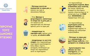 Την τήρηση κανόνων υγιεινής για την προστασία και την πρόληψη της μετάδοσης του νέου κορωνοϊού, υπενθυμίζει τα υπουργείο Υγείας. Συγκεκριμένα, αυτά που πρέπει να κάνουμε είναι τα εξής: Πλένουμε συχνά και σχολαστικά τα χέρια μας με σαπούνι και νερό ή αλκοολούχο διάλυμα. Όταν βήχουμε ή φταρνιζόμαστε, καλύπτουμε το στόμα και τη μύτη μας με τον […]