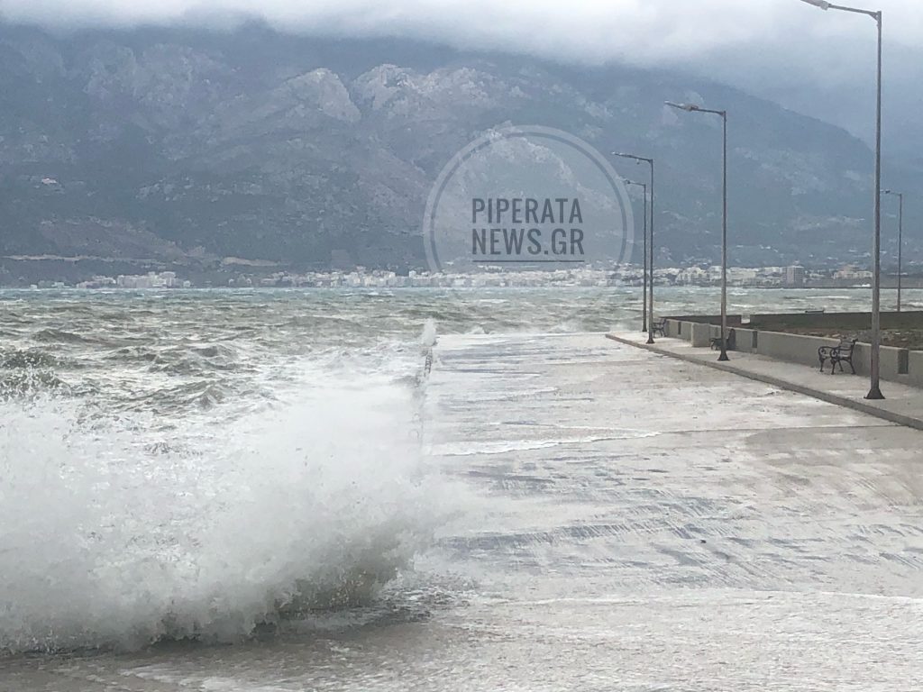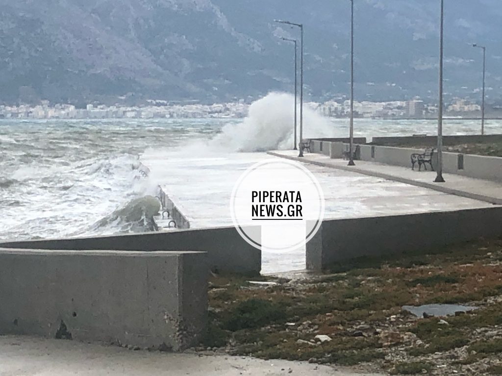 Οι ισχυροί άνεμοι των τελευταίων ημερών σήκωσαν κύματα αρκετών μέτρων που «χτυπούν»το λιμάνι της Κορίνθου.