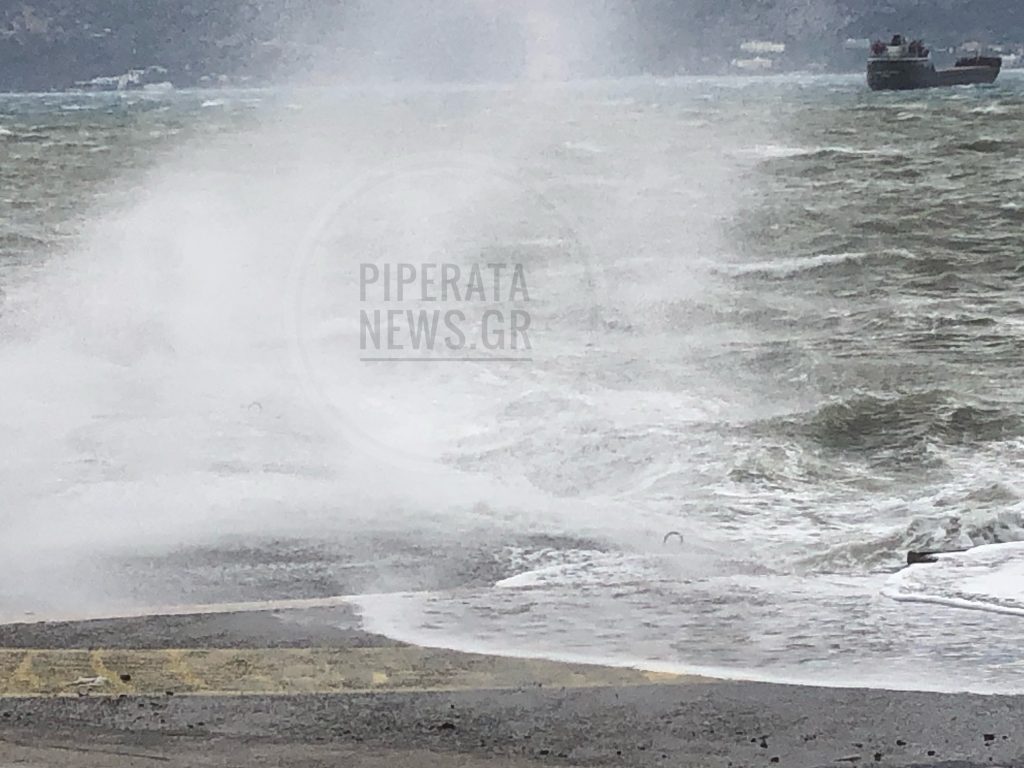 Τα κύματα «χτυπούν» το λιμάνι της Κορίνθου (φωτογραφίες)
