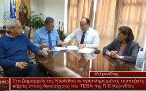 Ο Αντιπεριφερειάρχης Κορινθίας Αναστάσιος Γκιολής μαζί με τους θεματικούς Αντιπεριφερειάρχες παρέδωσαν στον Δήμαρχο Κορινθίων Βασίλη Νανόπουλο, προπληρωμένες κάρτες που τις επόμενες ημέρες θα δωθούν στους δικαιούχους.Όλοι μαζι έκατσαν στο ιδιο τραπεζι και συζήτησαν για καλο σκοπό. Δείτε το σχετικό ρεπορταζ:
