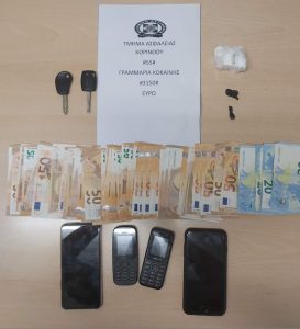 Σε έρευνα που πραγματοποιήθηκε στην οικία του 53χρονου, στο Λουτράκι Κορινθίας, βρέθηκαν συνολικά και κατασχέθηκαν, δύο (2) μικροποσότητες κοκαΐνης, το χρηματικό ποσό των -200- ευρώ και κινητό τηλέφωνο, ενώ κατασχέθηκε και ένα (1) όχημα, ως μέσο τέλεσης αξιόποινων πράξεων.