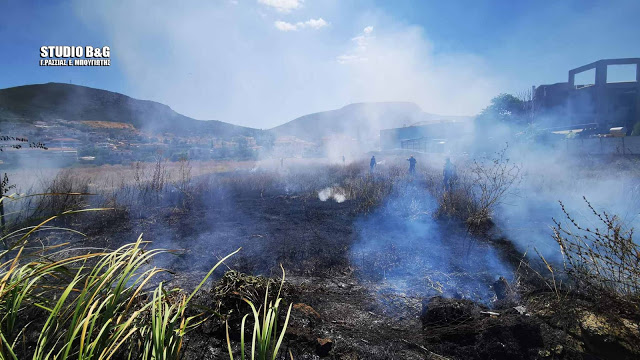 Οχήματα και οι άνδρες της πυροσβεστικής από το Ναύπλιο έδρασαν άμεσα και πρόλαβαν την πυρκαγιά πριν εξαπλωθεί.