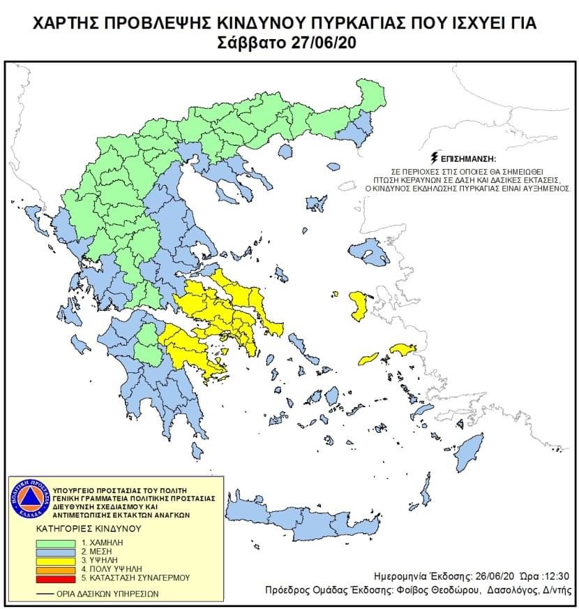 📌 Σύμφωνα με το Χάρτη Πρόβλεψης Κινδύνου Πυρκαγιάς 🔥 που εκδίδει η Γενική Γραμματεία Πολιτικής Προστασίας για αύριο Σάββατο 27 Ιουνίου 2020, προβλέπεται υψηλός κίνδυνος πυρκαγιάς (κατηγορία κινδύνου 3) σε Αττική, Βοιωτία, Φθιώτιδα, Κόρινθο, Αργολίδα, Εύβοια, Σάμο, Χίο και Ικαrρία.