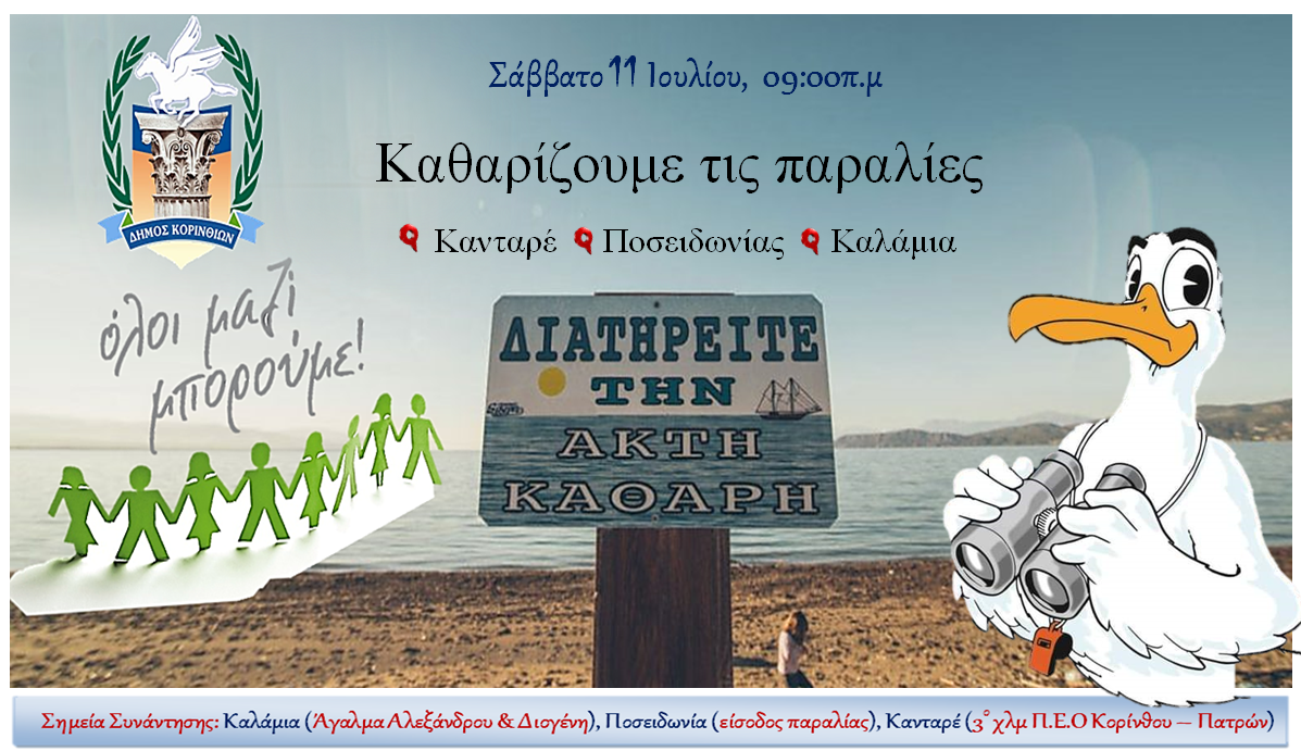 «Ελάτε να φροντίσουμε τις παραλίες του τόπου μας! Ελάτε να στείλουμε το μήνυμα «ΠΑΜΕ ΚΟΡΙΝΘΟ» παντού!»