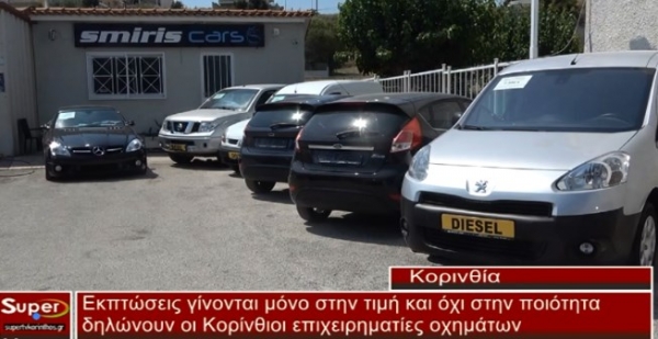 Εκπτώσεις γίνονται μόνο στην τιμή και όχι στην ποιόητα δηλώνουν οι επιχειρηματίες αυτοκινήτων της Κορίνθου.Οι τιμές είναι για όλα τα βαλάντια και η δυνατότητα επιλογής οχήματος τεράστια.Ο Αθανάσιος Σμύρης που μας δίνει το ρεπορταζ δηλώνει απόλυτα ευχαριστημένος από την αγοραστική κίνηση.