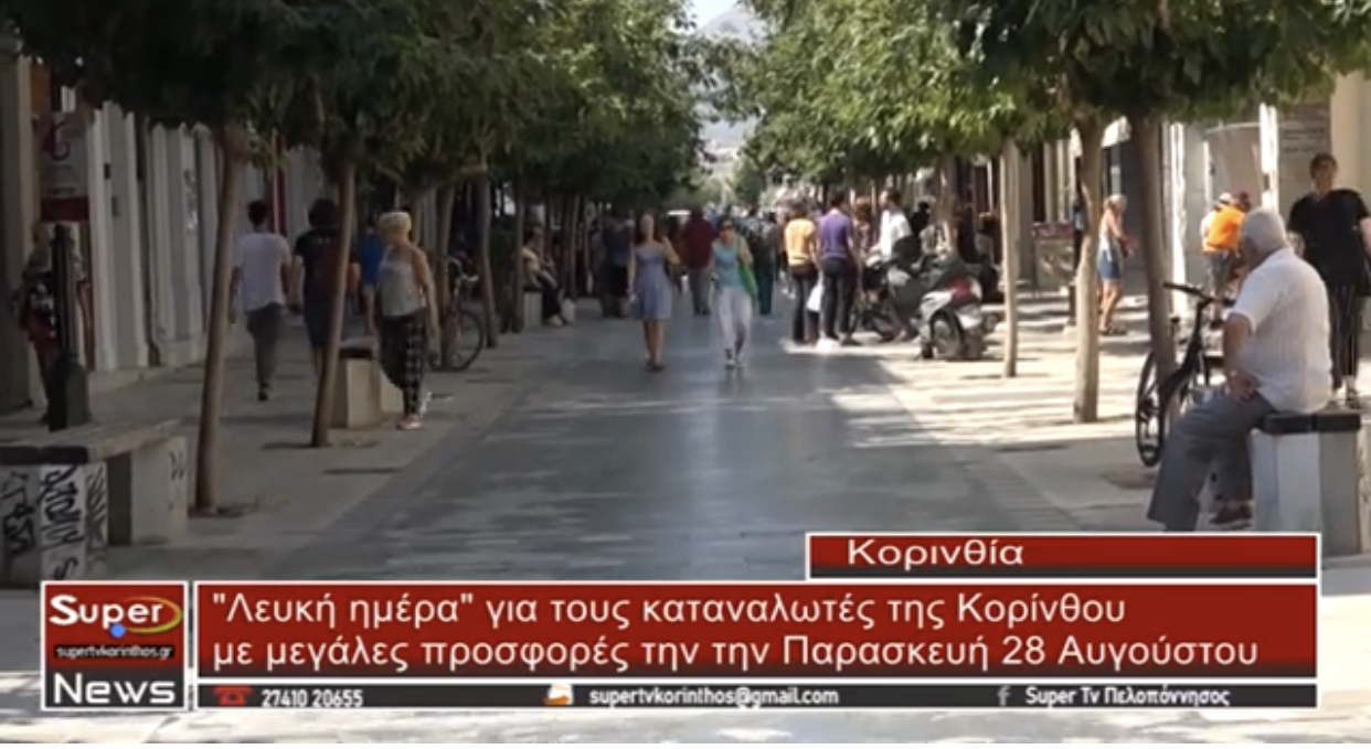 Ο Εμπορικός Σύλλογος Κορίνθου ανατρέπει τα δεδομένα και πραγματοποιεί λευκή ημέρα την Παρασκευή 28 Αυγούστου δίνοντας την ευκαιρία στους καταναλωτές να αγοράσουν όλα όσα επιθυμούν.