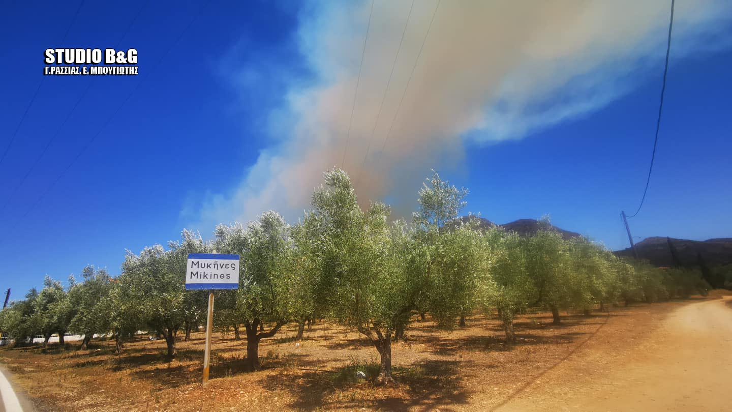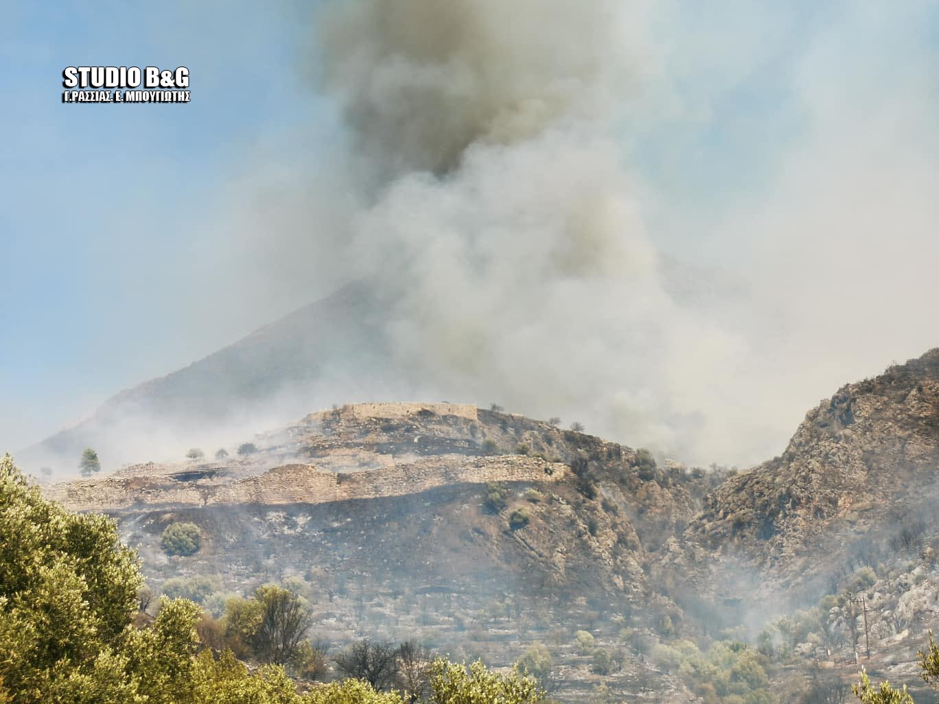 Μεγάλη ειναι η πυρκαγιά που εκδηλώθηκε την Κυριακή το μεσημέρι στον αρχαιολογικό χώρο των Μυκηνών στην Αργολίδα