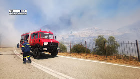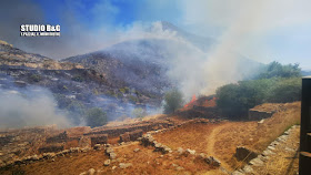 Η φωτιά κατευθύνεται προς το βουνό που ειναι πίσω από τον αρχαιολογικό χώρο ενώ ενισχύσεις της πυροσβεστικής καταφθάνουν συνέχεια.