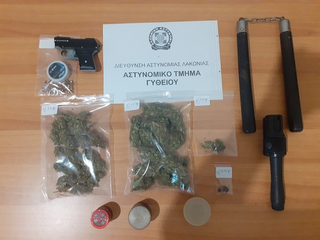 Συνελήφθη, χθες (23.9.2020) το πρωί, σε τοπική κοινότητα του Δήμου Ανατολικής Μάνης Λακωνίας, από αστυνομικούς του Αστυνομικού Τμήματος Γυθείου, 30χρονος ημεδαπός για παράβαση των νομοθεσιών για τα ναρκωτικά και τα όπλα.