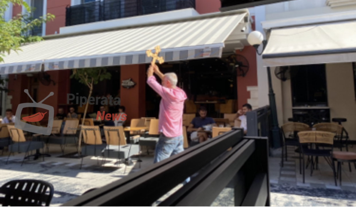 Μια ασυνήθιστη ενέργεια σημειώθηκε πριν λίγα λεπτά στο πεζόδρομο της Κορίνθου.Ενας κυριος με τον σταυρό στο χέρι πέρασε ανάμεσα από τις καφετέριες και φώναζε πως δεν ειμαστε σε σωστο δρόμο και καλούσε τους πολίτες να μετανοήσουν.Μια κίνηση που προκάλεσε το γέλιο όσων απολάμβαναν τον καφε τους.