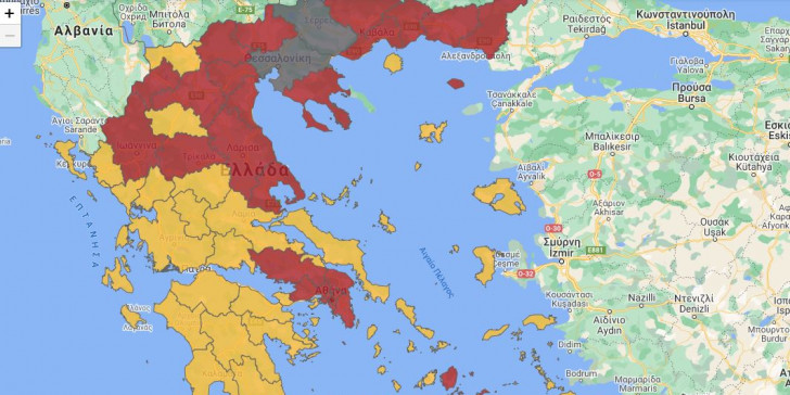 Στο επίπεδο Γ -συναγερμού (γκρι): Θεσσαλονίκη, Σέρρες