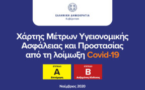 Δημοσιοποιείται από τον ΕΟΔΥ ο χάρτης των μέτρων υγειονομικής ασφάλειας και προστασίας από τον κορονοϊό covid-19 στις διάφορες περιοχές της χώρας, ανάλογα με το επίπεδο στο οποίο αυτές βρίσκονται όσον αφορά τα επίπεδα διάδοσης της νόσου. Τον εν λόγω χάρτη με τις οδηγίες μπορείτε να τον δείτε εδώ.
