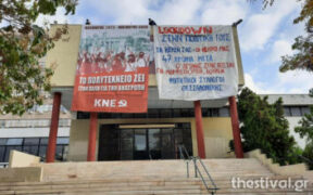 Γιγαντοπανό στην Πολυτεχνική Σχολή του Αριστοτέλειου Πανεπιστημίου Θεσσαλονίκηςκρέμασε πριν από λίγο τριμελής αντιπροσωπεία φοιτητών. Του ανταποκριτή μας από το thestival.gr στη Θεσσαλονίκη Οι φοιτητές ήρθαν σε συνεννόηση με την διοίκηση του Πανεπιστημίου και σήμερα τους επετράπη να εισέλθουν στον προαύλιο χώρο του Πολυτεχνείου. «Lockdown στην πολιτική τους. Τα κέρδη σας η πολιτική τους. 47 χρόνια […]