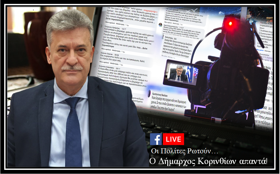 Μια ακόμα live επικοινωνία με τους δημότες μέσω των social media είχε την Τρίτη το απόγευμα ο Δήμαρχος Κορινθίων Βασίλης Νανόπουλος. Η διαδικτυακή επικοινωνία του Δημάρχου εγκαινιάστηκε στο πρώτο κύμα της πανδημίας από την βούληση του Βασίλη Νανόπουλου να κρατήσει την «γραμμή επικοινωνίας ανοιχτή» το διάλογο με τους πολίτες ζωντανό, την ενημέρωση τους ενεργή. Οι πολίτες ανταποκρίθηκαν και συνεχίζουν να το κάνουν απευθύνοντας ερωτήματα για μικρά και μεγάλα ζητήματα του δήμου αλλά και καταθέτοντας προτάσεις τις οποίες ο Δήμαρχος καταγράφει ώστε, όπως ανέφερε, «από κοινού να διαμορφώσουμε το μέλλον του δήμου μας». ΟΛΟΙ οι πολίτες που επιθυμούσαν και όχι μόνο οι «φίλοι» των προφίλ του Δήμου και του Δημάρχου είχαν την δυνατότητα να γράψουν στα σχόλια τα ερωτήματα και τις προτάσεις τους.