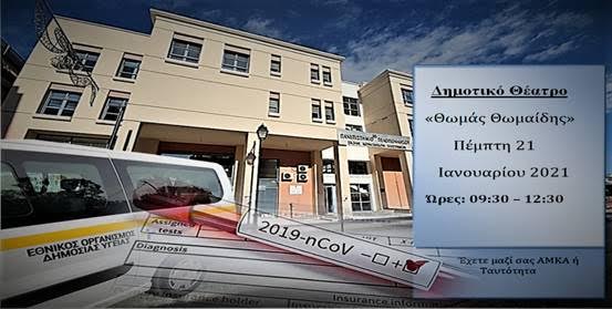 ΔΩΡΕΑΝ εξέταση για Covid-19 στο Δημοτικό Θέατρο Κορίνθου την Πέμπτη 21 Ιανουαρίου